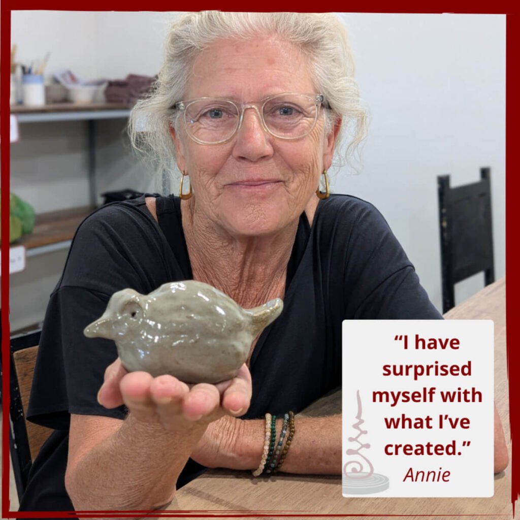 The space is calm and enjoyable. The staff are always welcoming, friendly and happy to help. My fellow potters in the open studio are not only inspiring, they’re good to have a chat with.