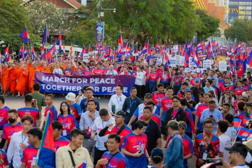 Cambodians and members of the international community came together in Phnom Penh on Thursday afternoon to take part in a peaceful march calling for calm, dialogue, and full respect for the ceasefire amid ongoing tensions along the Cambodia–Thailand border.