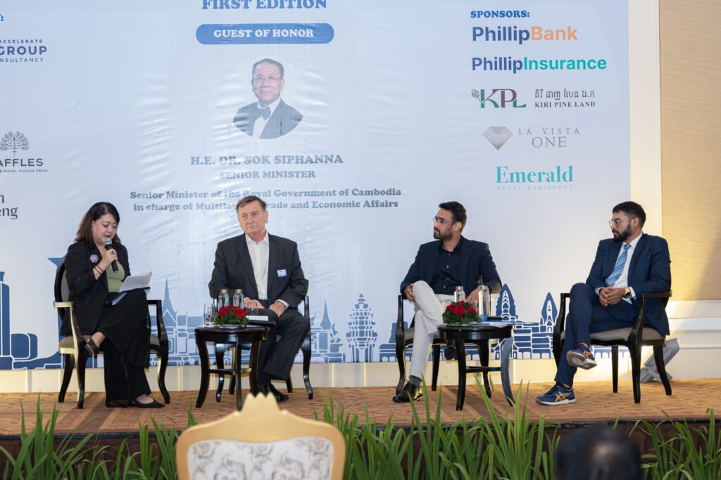 The event also acknowledged sponsor and partner support, including PhillipBank as banking sponsor, PhillipGeneral Insurance as insurance sponsor, LaVista One and Emerald Hotel Residence as development sponsors, Kiri Pine Land as sponsor, and SHRI SAI TECH LLC (SST) as supporting sponsor. Media and venue partners included The Better Cambodia, Pinex Pro, Rajah & Tann Sok & Heng Cambodia, and Raffles Hotel Le Royal.