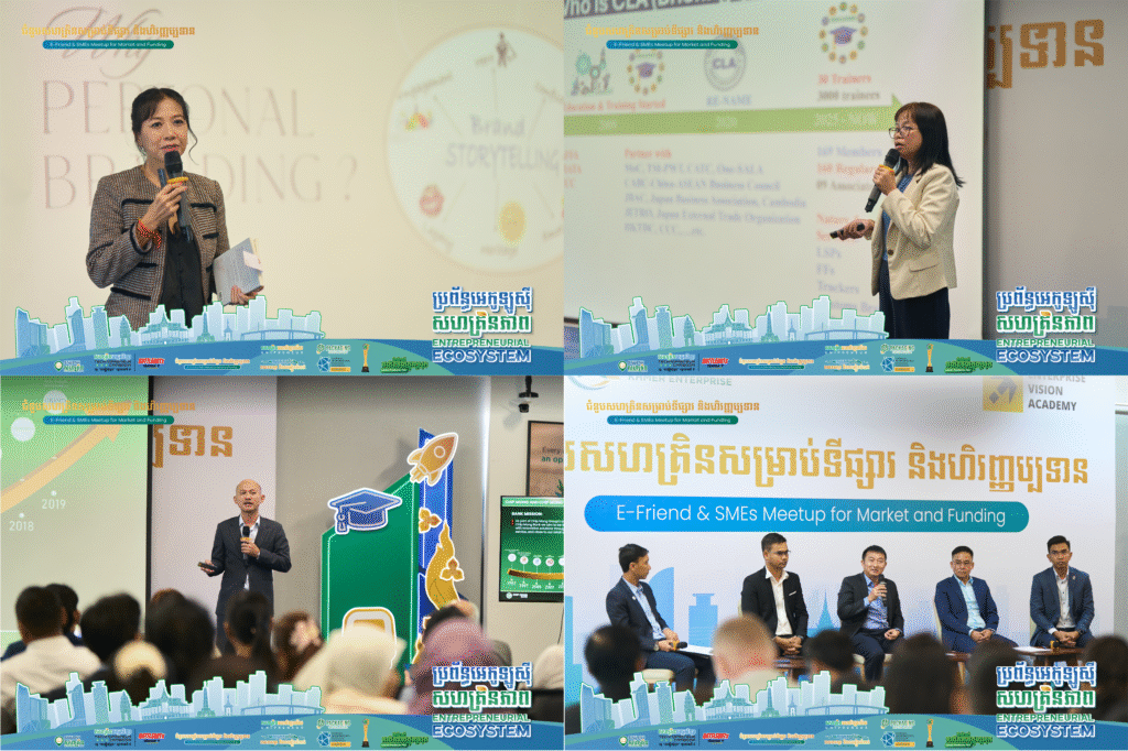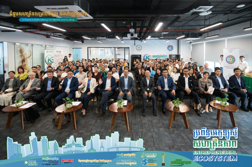 Khmer Enterprise has successfully organized the E-Friend & SMEs Meet-Up for Market and Funding in collaboration with Enterprise Vision Academy, one of the flagship programs under the Entrepreneurial Ecosystem Campaign 2025. The event brought together entrepreneurs, SMEs, banks, investors, and major market operators with the shared goal of strengthening market access, unlocking financing pathways, and supporting sustainable business development.